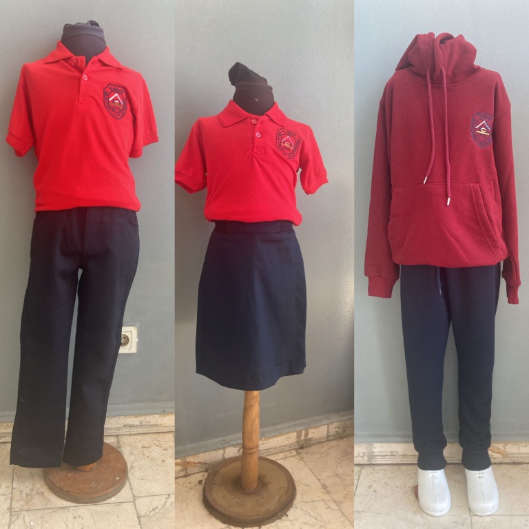 Kız öğrenci alt kıyafetleri: lacivert şort etek, lacivert pantolon veya lacivert eşofman altı