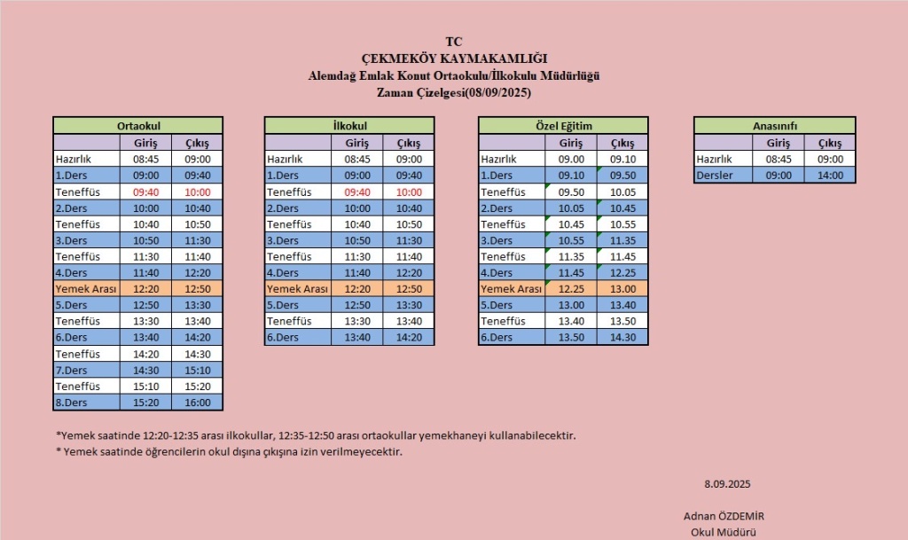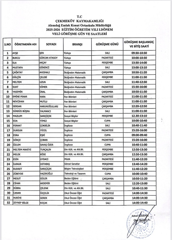Ders Programı-Sınav Takvimi-Öğretmen ile Görüşme Günleri